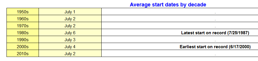 One of the most promising data sets which might confirm the “Warming-brings-an-earlier-monsoon Theory” is from the Monsoon Tracker Home Page of the NWS Tucson forecast office, https://www.wrh.noaa.gov/twc/monsoon/monsoon.php