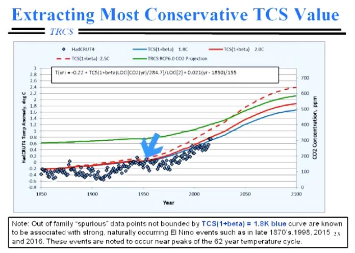 The main point of disagreement between TRCS and IPCC related to the unrealistic IPCC Equilibrium Climate Sensitivity (ECS) and Transient Climate Response (TCR) metrics. Consequently, the Team developed their own Transient Climate Sensitivity (TCS) metric that was comparable to the real data.