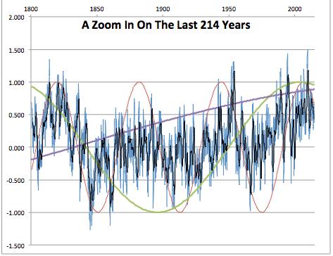 Over the past couple of decades the analysis of long term data has shown that there are natural cycles that apparently drive surface and ocean temperature variations. None of these variations show any long term warming trends. They actually cycle over a variety of periods. Three cycles seem to have now emerged from what had seemed to be a chaotic, un-patterned temperature record.