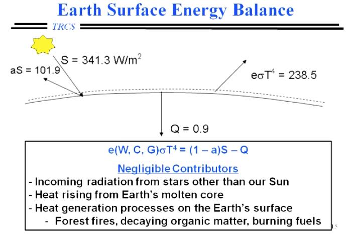 β= GHG Effects a= albedo S= incoming radiation (341.3 W/m2)