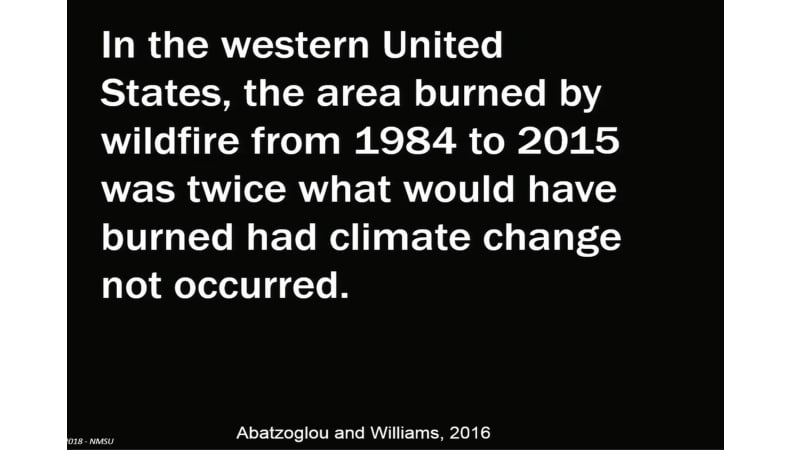 It’s amazing to me that during his lecture, Garfin presented a “peer-reviewed” paper which said increased forest fires in the west were from “climate change during the period 1984-2015.” There was a minimum of forest fire activity in 1983 and 1984 because of the excessive rain and snowfall at the peak of this pluvial. There was a slight increase in fire activity in the years after 1983, but by choosing a start date of 1984, the “peer-reviewed article” was merely cherry picking a peak in the pluvial and minimum of fire activity as the start date for their period. That this abuse occurs in the “peer reviewed literature” is a failure of the peer-review process and a disgrace to Science.