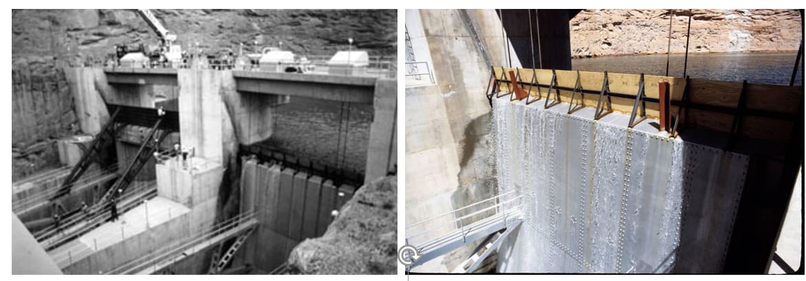 June 1983: Emergency construction was undertaken at Glen Canyon Dam’s spillway gates. The El Nino at the peak of the PDO-warm cycle produced such prodigious amounts of snow and rain in the Colorado River basin that the resulting high water nearly overtopped the spillways.