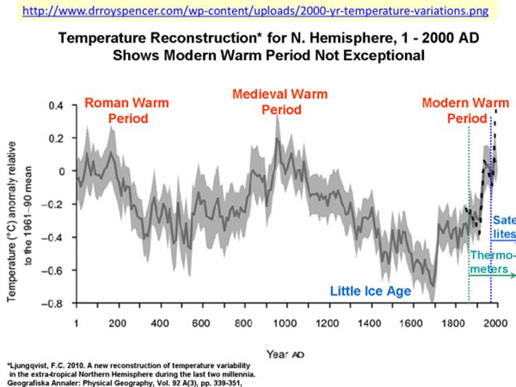 Another source of Dr, Spencer’s 2000-year climate history from Ljungqvist: http://www.drroyspencer.com/2014/05/ill-see-your-97-percent-and-raise-you-3-percent/