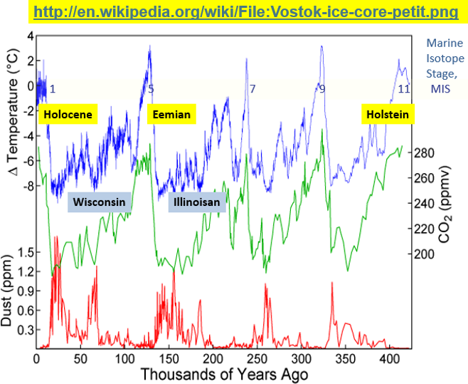 Last, furthest right, MIS 11, about 410,000 years ago, with a mean temperature warmer than the Holocene and <CO2> 280 PPM.