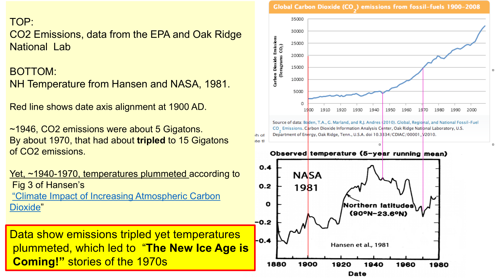 This post directly contradicts the notion that greenhouse gas emissions, specifically, emissions of CO2, caused the latest increase in global temperatures.